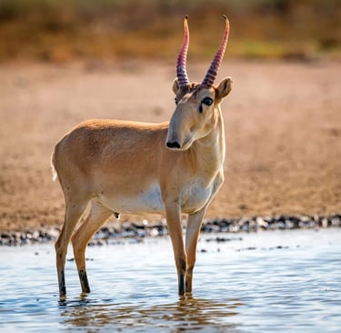 Saigas, once critically endangered due to poaching and habitat loss, have been the focus of major conservation efforts in Kazakhstan and neighboring regions. International organizations and national authorities have worked to restore populations through anti-poaching measures, habitat protection and regulated management, contributing to broader biodiversity conservation programs (биоалуантүрлілікті сақтау бағдарламалары) [bioaluan türliliktі saqtau bağdarlamalary] and species recovery initiatives (түрлерді қалпына келтіру бастамалары) [türlerdi qalpyna keltiru bastamalary].